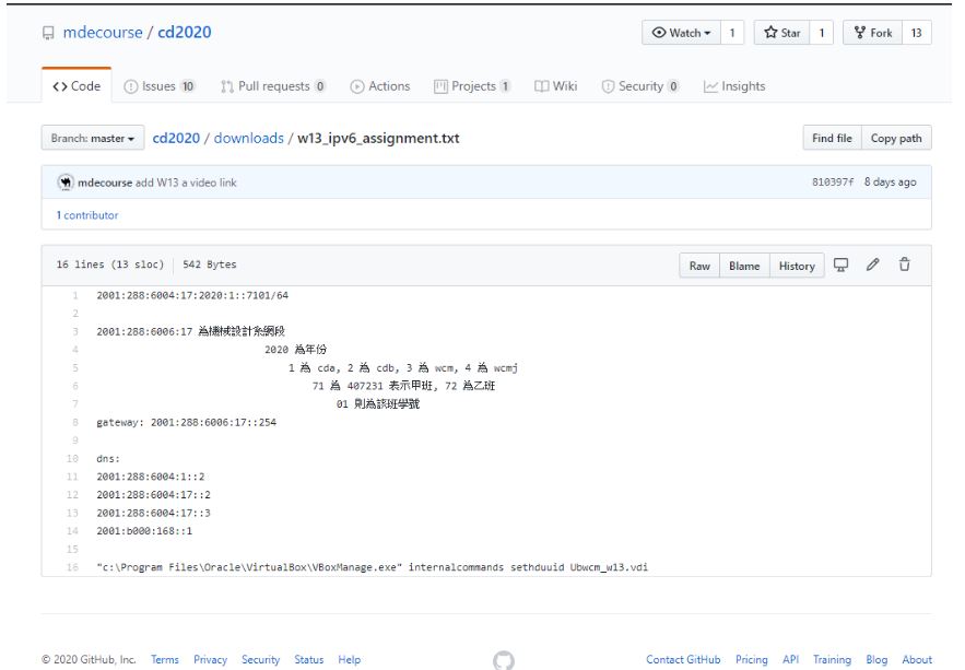 (https://github.com/mdecourse/cd2020/blob/master/downloads/w13_ipv6_assignment.txt)